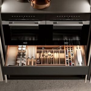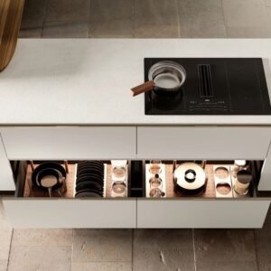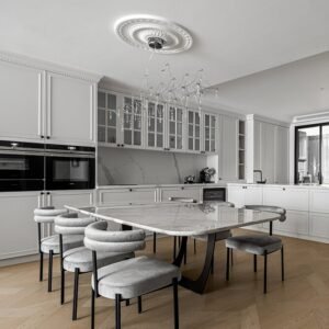Melamine kitchen cabinets are a type of cabinetry constructed using melamine, a synthetic material made from resin-saturated paper that is fused onto particleboard or MDF (medium-density fiberboard) through a process of heat and pressure. Melamine cabinets are known for their affordability, durability, and resistance to moisture, making them a popular choice for kitchens.