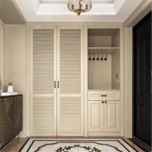 A shoe cabinet (or shoe storage) typically belongs to the category of hallway or entryway furniture, as it is designed to store and organize shoes near the entrance of a home. Shoe cabinets are specifically crafted to address the need for a dedicated storage solution for footwear, promoting an organized and tidy entry space.