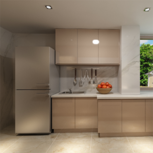 Material: Lacquer kitchen cabinets are often constructed using MDF or particleboard as the base material. The lacquer finish is then applied to create a smooth and reflective surface.