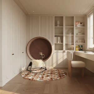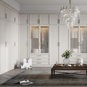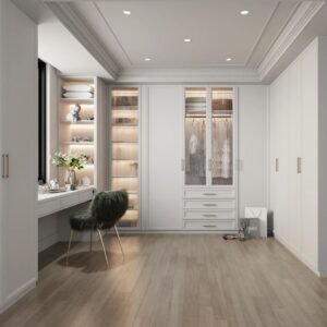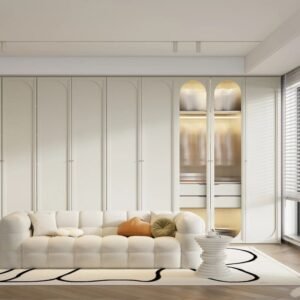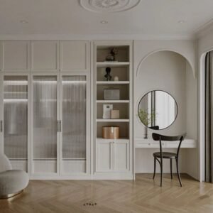 The French light luxury style cloakroom is entirely designed with warm and simple colors and simple furniture, with a traditional concept of people-oriented and respect for nature as the design center. By using design factors that make people feel familiar, it creates a sensory effect like a spring breeze. Belongs to the natural style series.