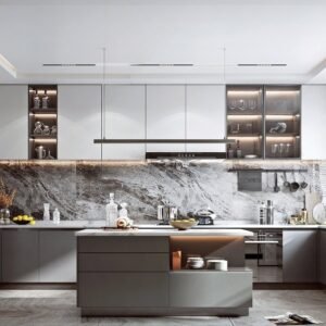 Italian minimalist cabinet design is based on the ultimate minimalist style, highlighting the texture through some exquisite yet high-end soft furnishings, making the monotonous space appear fuller and revealing a decent taste everywhere. Advanced gray cabinets create a unique cool and serene atmosphere of gray, which is concise and grand without losing its dignity.