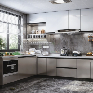 Stainless steel kitchen cabinets made from 304 stainless steel are resistant to corrosion, moisture, water and insects. It does not warp and is durable.