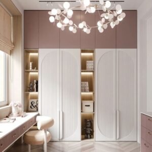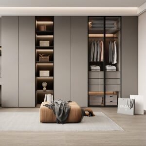 A walk-in closet is a large, dedicated storage space for clothing, shoes, accessories, and other personal items. Unlike traditional closets, a walk-in closet is designed for individuals to walk into, offering ample space for organizing and storing a diverse wardrobe. Walk-in closets are often associated with luxury and are commonly found in larger homes, especially in master bedrooms.