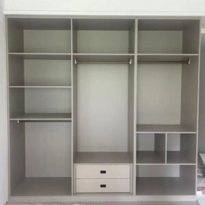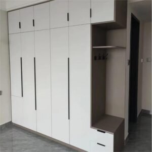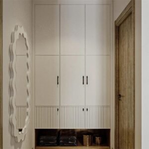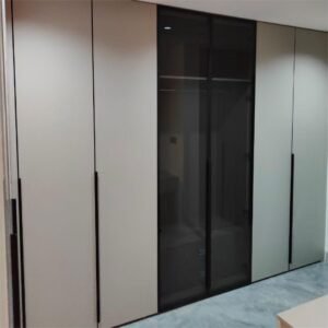 A hinged wardrobe, also known as a swing door wardrobe or closet, is a traditional type of wardrobe that features doors attached to the cabinet with hinges, allowing them to swing open and close. This wardrobe design is one of the most common and classic styles, offering a timeless and versatile solution for bedroom storage.