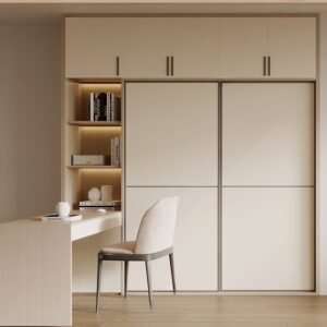 A sliding wardrobe, also known as a sliding door wardrobe or closet, is a type of wardrobe that features doors that slide horizontally along tracks rather than swinging open. This design is known for its space-saving qualities and contemporary aesthetic. Sliding wardrobes are popular choices for bedrooms and dressing areas, providing a sleek and functional storage solution.