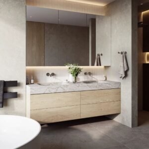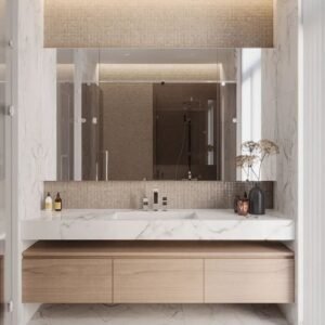 Wall-mounted vanities are ideal for bathrooms with limited space. By freeing up floor space, they create a more open and visually spacious feel, making them especially popular in smaller bathrooms.