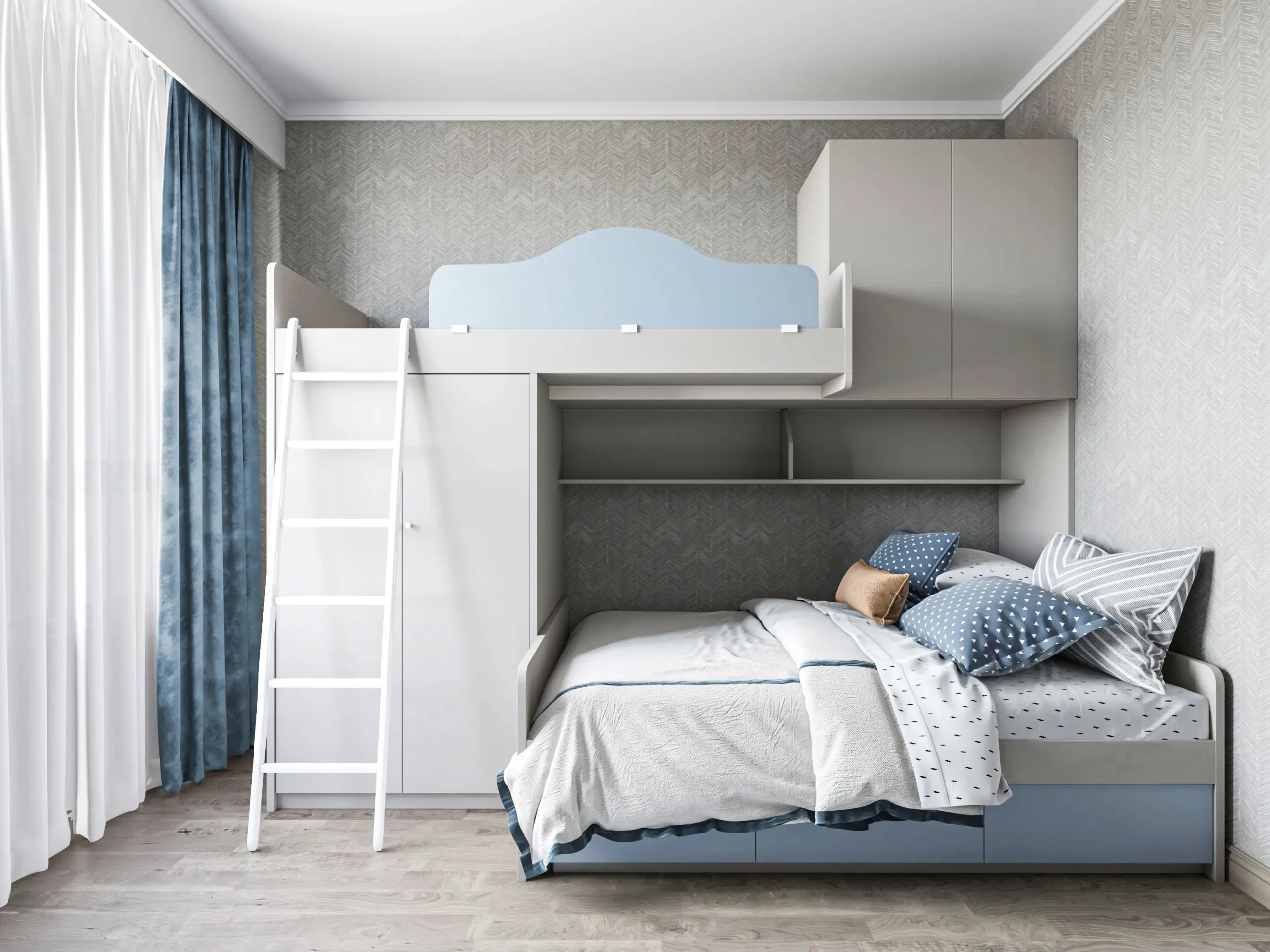 The upper and lower beds are designed to meet the sleeping needs of two children at the same time.