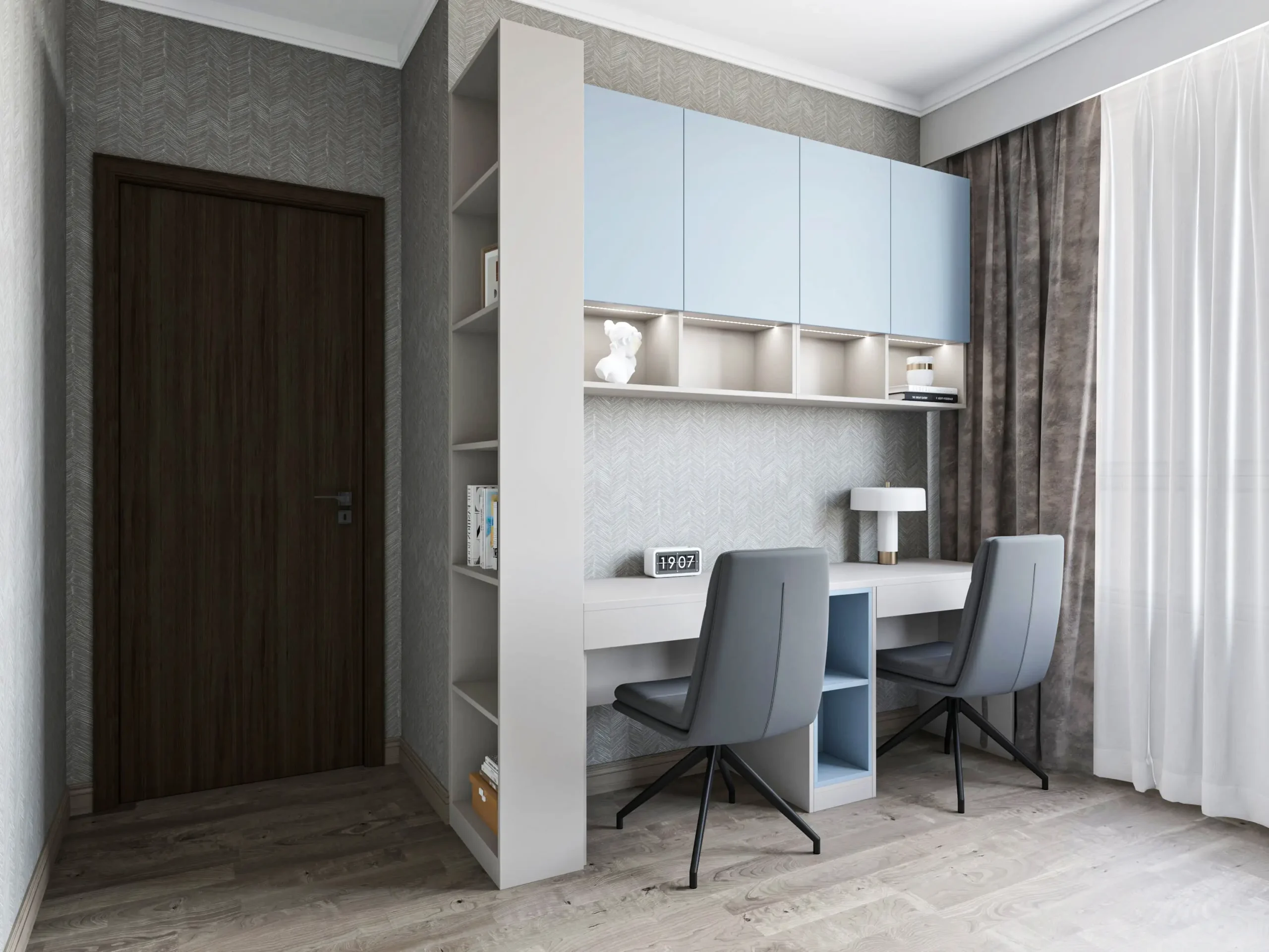 And two study chairs are arranged for two children to study.